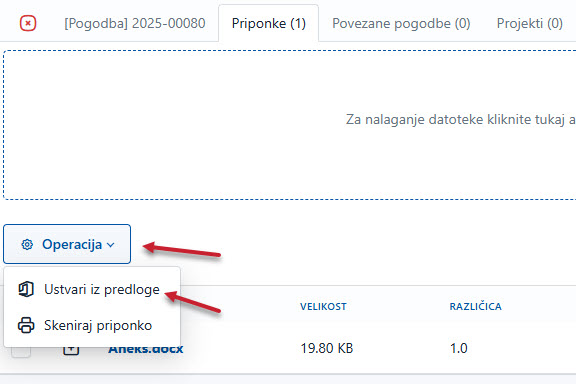 Predloga je vnaprej pripravljen dokument (npr. Word ali PDF) z vključenimi fiksnimi elementi in označenimi spremenljivkami (npr. [ime_stranke], [datum], [znesek]), ki se ob kreiranju samodejno nadomestijo z dejanskimi podatki.
