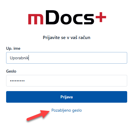 Dostop do funkcije "Pozabljeno geslo"