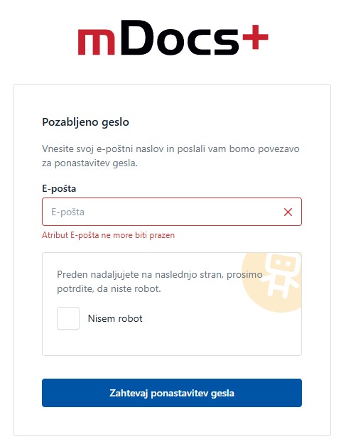 ⚠️ Poskrbite, da boste vnesli pravilen in obstoječ e-poštni naslov.