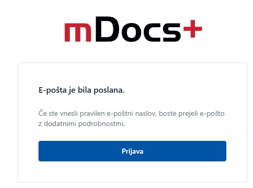 V nekaj minutah boste prejeli sporočilo z naslovom "Ponastavitev gesla za mDocs".