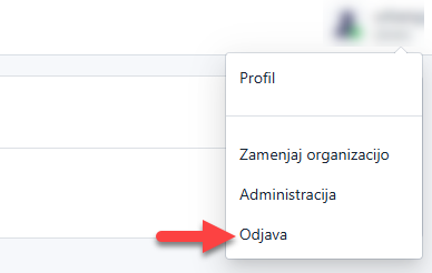 Uporabnik se iz sistema odjavi tako, da klikne na svoje uporabniško ime (desni zgornji kot), nato pa v meniju izbere možnost "Odjava" in se tako uspešno odjavi iz sistema.